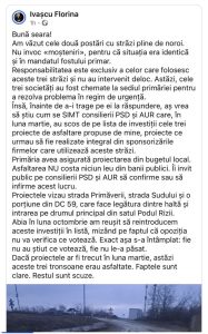 Primăria avea asigurată proiectarea din bugetul local. Asfaltarea NU costa niciun leu din banii publici. Îi invit public pe consilierii PSD și AUR să confirme sau să infirme acest lucru.